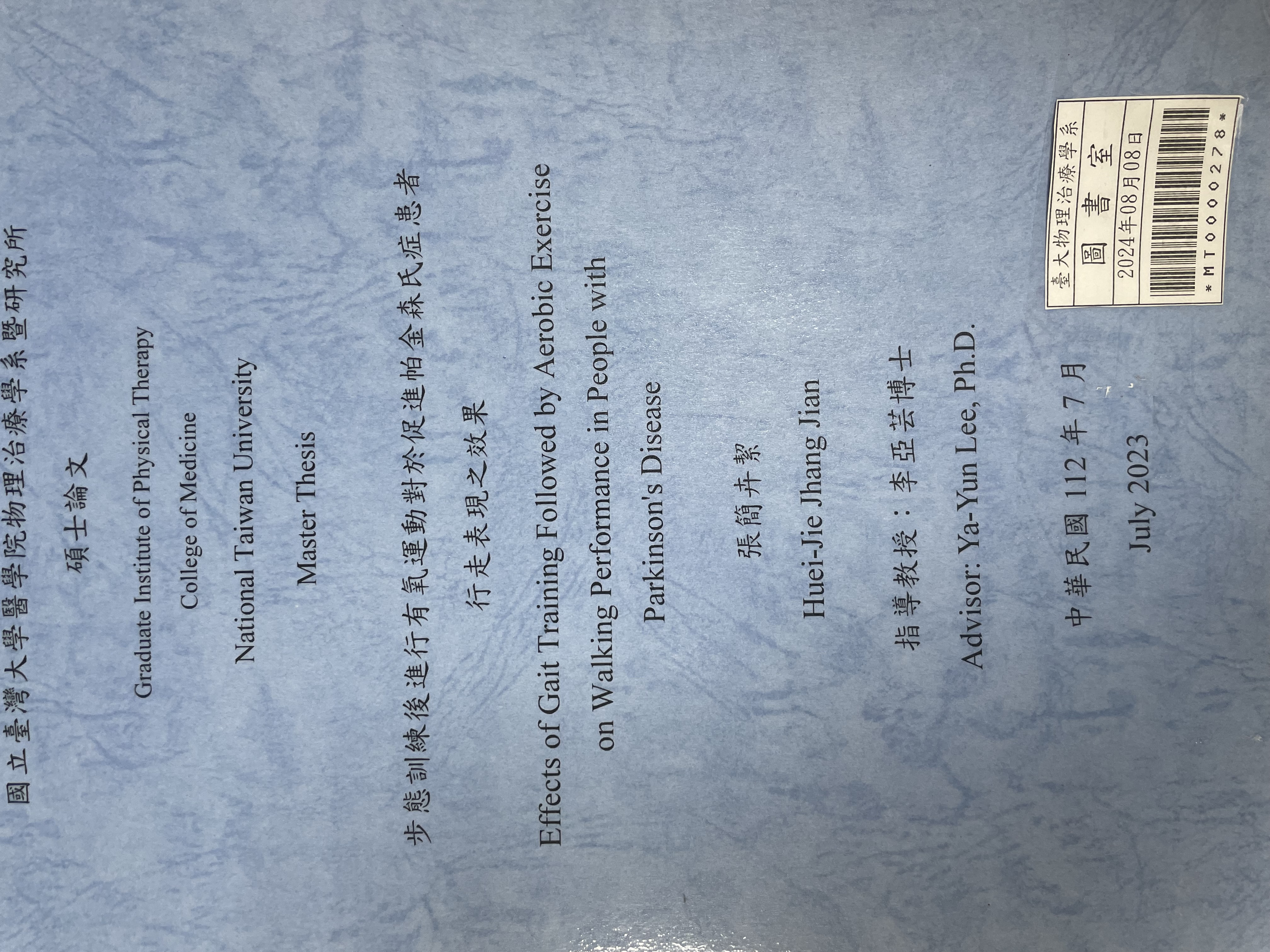 步態訓練後進行有氧運動對於促進帕金森氏症患者行走表現之效果 / Effects Of Gait Training Followed By Aerobic Exercise On Walking Performance In People With Parkinson's Disease