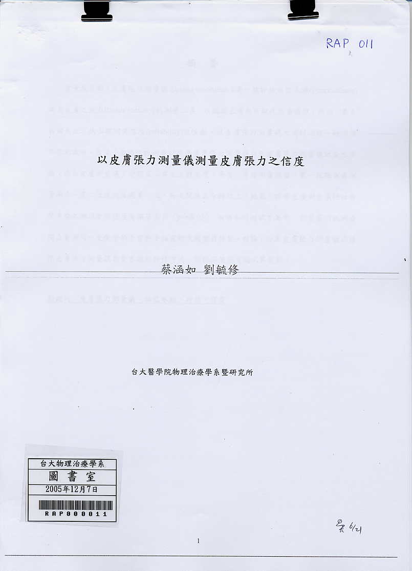 以皮膚張力測量儀測量皮膚張力之信度